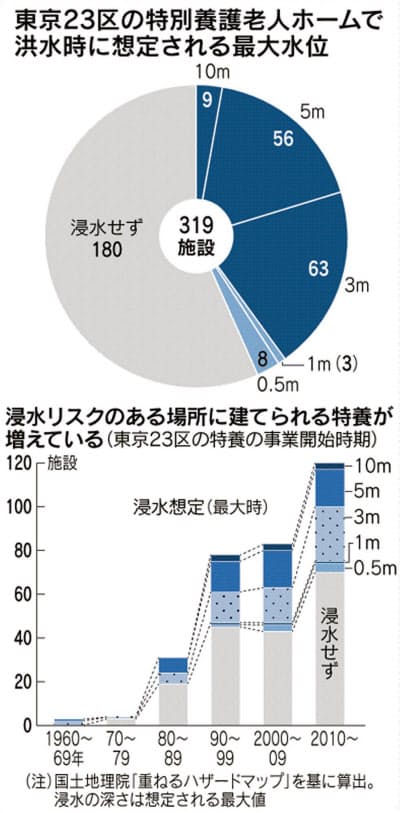 今回調査した東京23区の特養でも、最大10メートルの浸水を見込む9施設はすべて、90年代以降に事業を開始していた。