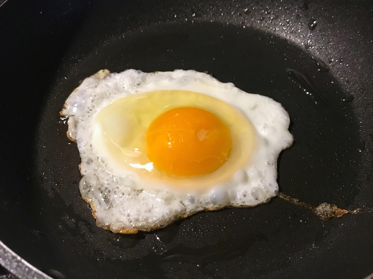 目玉焼きはこうして先に焼いておくと、フライパンを洗わずそのままドライカレー作りに入れてオススメです。弱火でじっくり焼くと黄身が鮮やかに焼き上がりますよ。